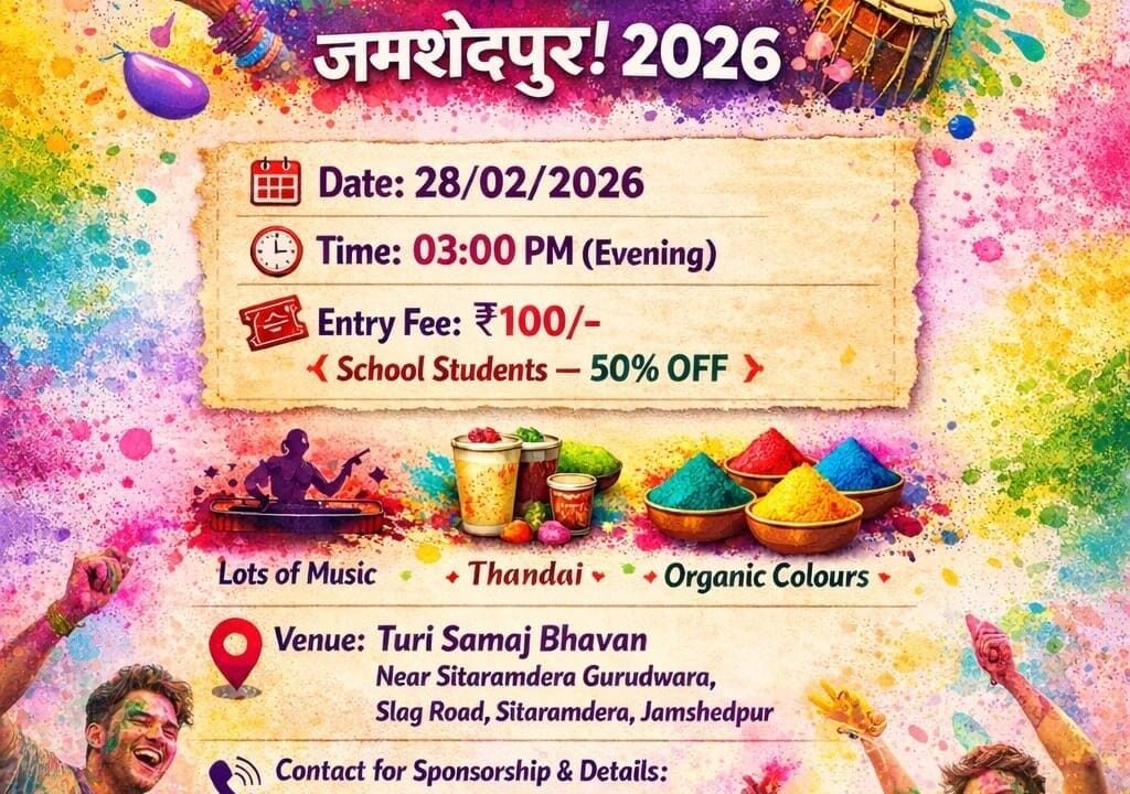 जमशेदपुर में 28 फरवरी को रंग बरसे जमशेदपुर 2026: जमशेदपुर यूथ इवेंट ने की भव्य होली महोत्सव की घोषणा
