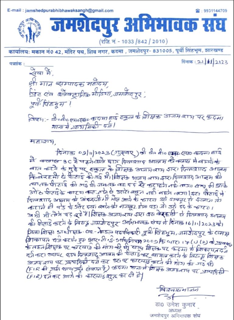 न्यूज़ टेल/जमशेदपुर: (साहिल अस्थाना) दिनांक 09/1/2023 (गुरुवार) को डी०बी०एम०एस० कदमा हाई स्कूल में क्लास 8C में पढ़ने वाले दिलशाद आलम...