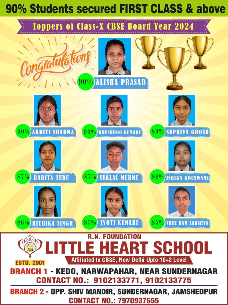 न्यूज़ टेल/जमशेदपुर: प्रत्येक वर्ष की भांति इस वर्ष भी R.N.FOUNDATIO LITTLE HEART SCHOOL के बच्चों का दसवीं तथा 12वीं बोर्ड...