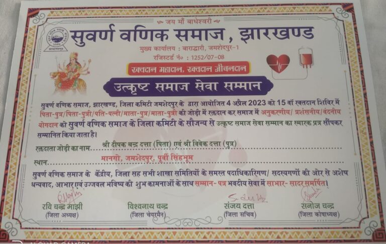न्यूज़ टेल/जमशेदपुर: सूवर्ण वनिक समाज के बाराद्वारी, जमशेदपुर स्थित केंद्रीय कार्यालय में 75वीं गणतंत्र दिवस का धूमधाम से आयोजन किया...