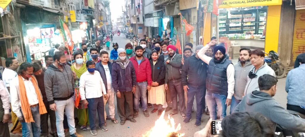 जमशेदपुर : झारखंड में गिरती विधि व्यवस्था के विरोध में प्रदेश नेतृत्व के आह्वान पर भाजपा जुगसलाई मंडल के तत्वावधान में चौक बाजार में राज्य सरकार का पुतला दहन किया गया। मंडल अध्यक्ष हेमेंद्र जैन (हन्नु) के नेतृत्व में हुए इस कार्यक्रम में कार्यकर्ताओं ने जमकर राज्य सरकार के खिलाफ नारे लगाए और पुतले को आग के हवाले कर कर दिया। इस अवसर पर हन्नु जैन ने कहा कि हेमंत सरकार में विधि व्यवस्था बद से बदतर हो गई है। ओर नक्सली वारदातें फिर शुरू हो गई है।उन्होनें कहा कि ऐसी नकारा सरकार को सत्ता में रहने का कोई हक नहीं है। इस अवसर पर मुख्य रूप से मंडल के पूर्व अध्यक्ष अनमोल शर्मा, अनुसूचित जाति मोर्चा जिला कोसाध्यक्ष, चंद्रशेखर दास, वरिष्ठ नेता दीपक निषाद, हरजिंदर सिंह निक्के, महिला मोर्चा जिला कार्यसमिति सदस्य अरविंदर कौर, मंडल उपाध्यक्ष प्रकाश अग्रवाल, गणेश रविदास, शेखर शर्मा, महामंत्री पिंटू शर्मा, सुनील शर्मा, मंत्री पिंटू सैनी, निकेश शर्मा, विवेक सिंह, कोसाध्यक्ष शिव शर्मा, कार्यालय प्रभारी नारायण सिंह, मीडिया प्रभारी ओमप्रकाश पाठक, आई टी सेल प्रभारी विजय शर्मा, महिला मोर्चा अध्यक्ष सोनू टिलावत, किसान मोर्चा अध्यक्ष विमल केवलका, उपाध्यक्ष अनूप खां, महामंत्री नितिन झा, मंत्री इंदर तिवारी, मजदूर सेल उपाध्यक्ष सन्नी भामरा, युवा मोर्चा के अंकित सिंह, राजा सिंह, विजय विश्वकर्मा, अजय दास, आदर्श कुमार, फ़ैज़ अंसारी, रवि कुमार, अमन उपाध्याय आदि कई कार्यकर्ता उपस्तिथ थे।