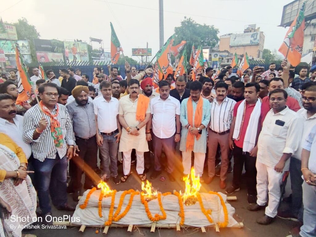 भाजपा महानगर ने राज्य सरकार के भ्रष्टाचार को लेकर निकाली शवयात्रा, पुतला फूंककर जताया रोष
