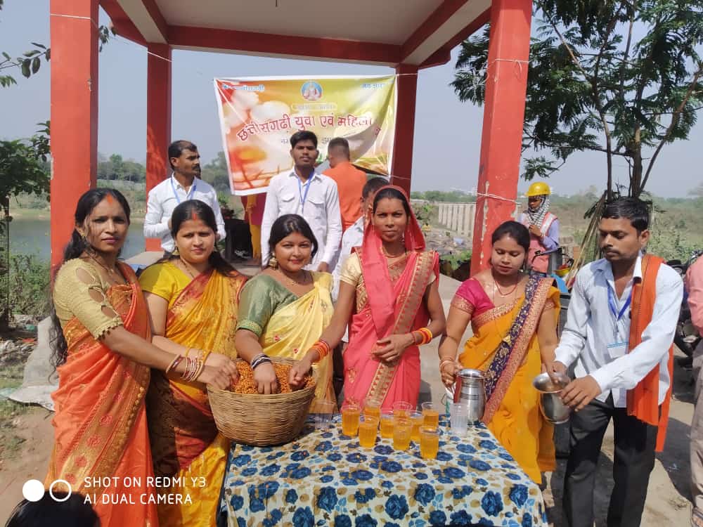 छत्तीसगढ़ी महिलाओं ने बड़ौदा घाट में लगाया सेवा शिविर बांटे चना, शर्बत