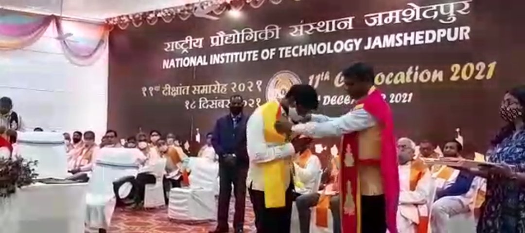 एनआईटी जमशेदपुर के 11 वें दीक्षांत समारोह में सिविल इंजीनियरिंग के छात्र बिट्टू कुमार और पोस्ट ग्रेज्युएट की छात्रा वाई वाहिनी को केंद्रीय मंत्री अर्जुन मुंडा ने गोल्ड मैडल प्रदान कर किया सम्मानित