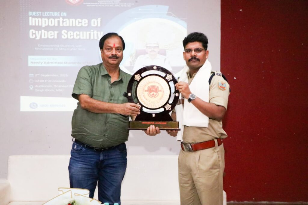न्यूज टेल डेस्क: जमशेदपुर स्थित नेताजी सुभाष यूनिवर्सिटी में “साइबर सुरक्षा का महत्व” विषय पर विशेष सेमिनार आयोजित किया गया। मुख्य अतिथि SSP पीयूष पांडे ने छात्रों को सुरक्षित पासवर्ड, ओटीपी साझा न करने और सोशल मीडिया पर निजी जानकारी सुरक्षित रखने जैसे उपायों पर जागरूक किया। उन्होंने कहा कि साइबर अपराध की रोकथाम केवल पुलिस की नहीं, बल्कि हर नागरिक की जिम्मेदारी है।