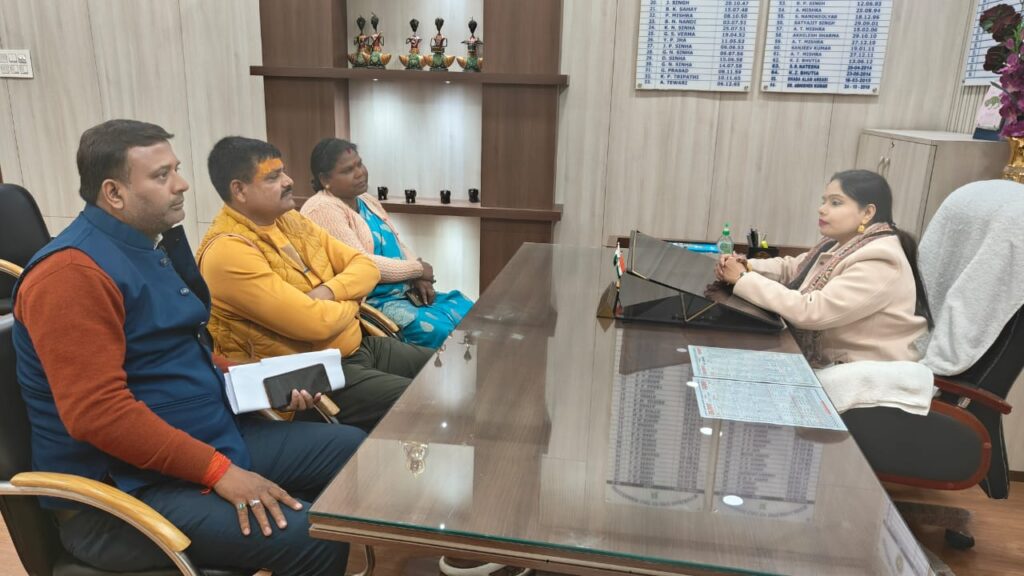 न्यूज़ टेल/जमशेदपुर: छोटा गोविंदपुर अंतर्गत पूर्वी छोटा गोविंदपुर एवं दक्षिण मध्य छोटा गोविंदपुर के पंचायत भवन निर्माण हेतु वन भूमि उपलब्ध करवाने की मांग को लेकर जिला परिषद अध्यक्ष बारी मुर्मू, उपाध्यक्ष पंकज ,स्थानीय जिला परिषद सदस्य डॉ परितोष सिंह डी एफ ओ सुश्री ममता प्रियदर्शनी से मिलकर समस्याओं से अवगत करवाया।