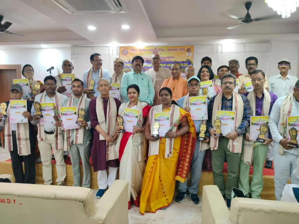 इसके उपरान्त मुख्य अतिथि के करकमलों द्वारा झारखंड के 19 जिलों से कुल 18 विभिन्न भाषाओं के साहित्य साधकों को साहित्य भूषण सम्मान से सम्मानित किया गया । सम्मानित होने वालों में सर्वश्री / श्रीमती डाॅ० प्रशांत करण, विजय कुमार भारती, डोबरो बुड़ीउली, डाॅ०पम्पा सेन विश्वास, महेन्द्र मोदी, डाॅ० अशोक कुमार ‘अविचल’, दिन्श्वर प्रसाद सिंह ‘दिनेश’, कुमार मनोज अरविन्द, डाॅ० अजय कुमार ओझा, डाॅ० प्रदीप प्रभात, मंगल सिंह मुण्डा, अमन कुमार होली, हरदेव नारायण सिंह,आदित्य कुमार मार्डी, डाॅ० मनोज कुमार राही, कमल लोचन कोड़ा, डाॅ० शकुन्तला मिश्र, डाॅ० चन्द्र किशोर केरकेट्टा, डाॅ० मित्रेश्वर अग्निमित्र, अंजनी शरण, डाॅ० कुमारी किरण वर्ण वाल, डाॅ० राम रंजन सेन, उमा शंकर ‘उरेन्दु’, शैलेन्द्र पाण्डेय शैल, सुरेश कुमार विश्वकर्मा प्रमुख रहे । जबकि सांगठनिक सम्मान पाने वालों में सर्वश्री /श्रीमती डाॅ० प्रसेनजित तिवारी, डाॅ० विजय प्रकाश, डाॅ० राजीव मिश्र ‘राजन’, रेणु वाला कुमारी, गुड़िया कुजुर, ललित शर्मा, मनीषा सहाय सुमन, विनीत कुमार, लव कुमार, सुशांत कुमार पाठक, अमन कुमार दास, इन्द्रजीत यादव, चन्दन प्रजापति, दुर्गेश चौधरी, निर्मला पुतुल, सपना चन्द्रा प्रमुख रहे ।