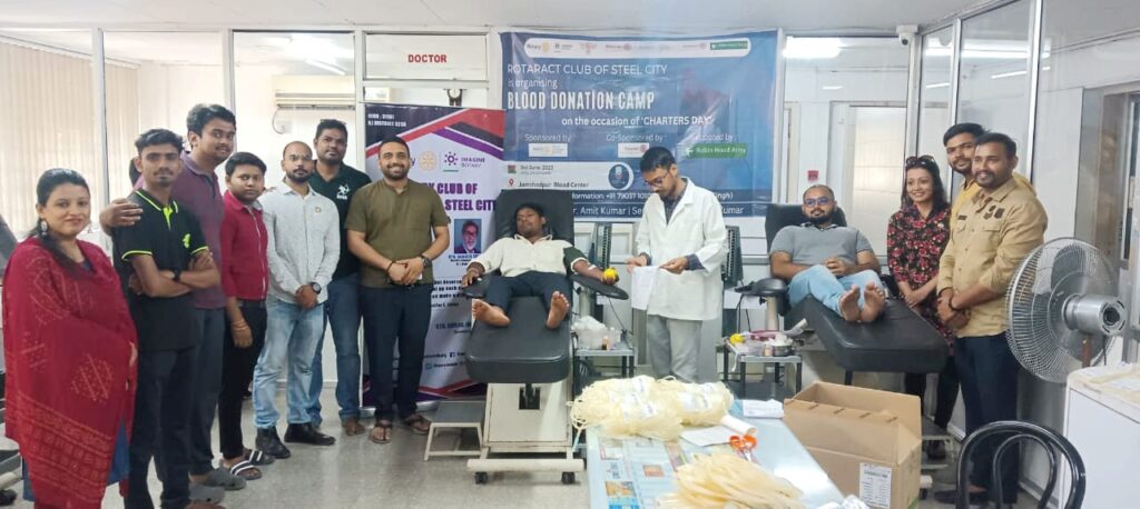 न्यूज़ टेल/जमशेदपुर: आज बिस्टूपुर स्थित जमशेदपुर ब्लड बैंक में चार्ट्स डे अवसर पर रोटरेक्ट क्लब ऑफ स्टील सिटी के द्वारा एक दिवसीय रक्तदान शिविर का आयोजन किया गया था। इस अवसर पर पूर्व विधायक एवं झारखंड भाजपा प्रदेश प्रवक्ता कुणाल षाड़ंगी उपस्थित रहे।