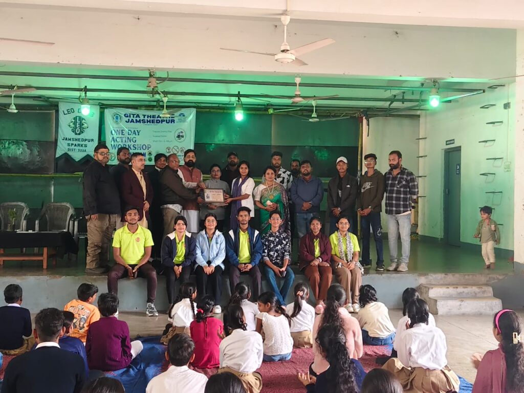 जमशेदपुर: लौहनगरी जमशेदपुर की नाट्य ट्रस्ट गीता थिएटर और टाटा स्टील फाउंडेशन द्वारा 01 दिवसीय एक्टिंग वर्कशॉप का आयोजन शहर के युवाओं हेतु धतकीडिह कम्युनिटी सेंटर में किया गया। यह वर्कशॉप पूरी तरह नि:शुल्क था। एक्टिंग वर्कशॉप का आरंभ अतिथियों और गीता थिएटर के सदस्यों द्वारा मां सरस्वती की तस्वीर पर पुष्प अर्पित कर और दीप प्रज्ज्वलित कर किया गया।इसके बाद गीता थिएटर की अध्यक्ष गीता कुमारी ने सभी का स्वागत करते हुए एक्टिंग वर्कशॉप के प्रशिक्षक, अतिथियों और सहयोगियों को फूलदार पौधे देकर सम्मानित किया।