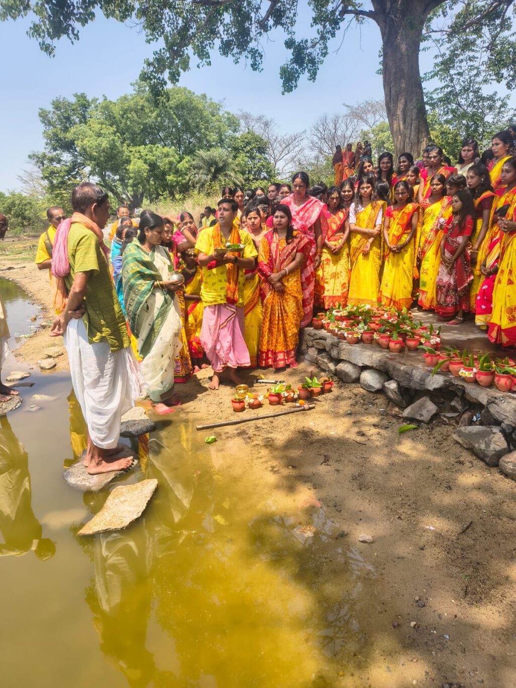 सरायकेला-खरसावां: राजनगर प्रखंड स्थित तुमुंग गांव में श्री श्री राधा गोविंद मंदिर परिसर में चल रहे धार्मिक अनुष्ठान के तहत शुक्रवार को 108 महिलाओं की भव्य कलश यात्रा निकाली गई, जिससे पूरा गांव भक्तिमय माहौल में डूब गया। पारंपरिक वेशभूषा में सजी महिलाओं ने सिर पर कलश धारण कर तुमुंग तालाब से विधि-विधान के साथ जल उठाया और भजन-कीर्तन करते हुए मंदिर परिसर तक यात्रा पूरी की। इस दौरान गांव के पुरुषों समेत सभी वर्गों के लोगों ने उत्साहपूर्वक भागीदारी निभाई। शाम को ‘गंधा दिवस’ के अवसर पर विशेष पूजन का आयोजन किया गया, जबकि रात्रि में सांस्कृतिक कार्यक्रम के तहत सिनी मोहितपुर से आई दीपक पाला कीर्तन मंडली द्वारा भक्ति संगीत और पाला कीर्तन की प्रस्तुति दी जा रही है, जिससे श्रद्धालु देर रात तक भक्ति रस में सराबोर रहे। आयोजन समिति के अनुसार यह धार्मिक अनुष्ठान कई दिनों तक जारी रहेगा, जिसमें विभिन्न पूजा-अर्चना और सांस्कृतिक कार्यक्रम आयोजित किए जाएंगे।