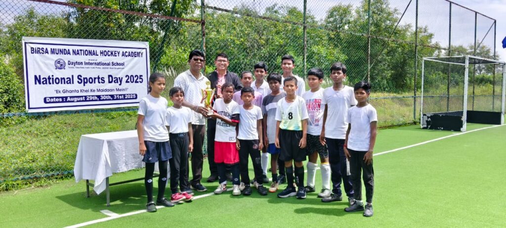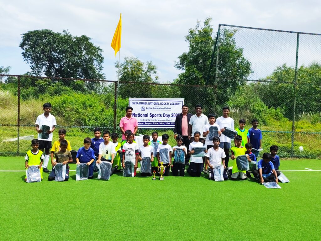 न्यूज टेल डेस्क: राष्ट्रीय खेल दिवस के अवसर पर टाटा हाता मेन रोड स्थित डेटन इंटरनेशनल स्कूल, तेतला परिसर में नवनिर्मित बिरसा मुंडा राष्ट्रीय हॉकी अकादमी में भव्य आयोजन किया गया। हॉकी के जादूगर मेजर ध्यानचंद की जयंती पर आयोजित इस विशेष कार्यक्रम में अंडर-12 हॉकी मैच का आयोजन हुआ।