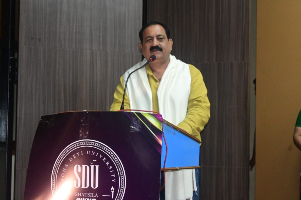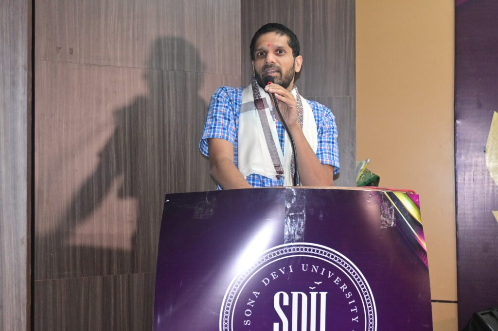 सोना देवी विश्वविद्यालय के कुलपति प्रो(डॉ.)जे. पी. मिश्रा ने विद्यार्थियों को सुनहरे भविष्य की शुभकामनाएं देते हुए कहा कि सिर्फ परीक्षा पास करने का उद्देश्य नहीं होना चाहिए । जीवन में व्यवाहारिक दृष्टिकोण अपनाए तभी सफलता मिलेगी । जवाबदेही स्वीकार करें और निरंतर कार्य करते रहे ।कुलसचिव डॉ. गुलाब सिंह आज़ाद ने सभी मेहमानों को स्मृति चिन्ह और शॉल भेंट कर सम्मानित किया। कार्यक्रम की शुरुआत दीप प्रज्जवलन के साथ श्री गणेश वंदना कर की गयी। सोना देवी विश्वविद्यालय के छात्र – छात्राओं ने सरस्वती वंदना कर प्रस्तुति दी। साथ ही समूह नृत्य कर लोक कला का प्रदर्शन किया। जमशेदपुर के रॉक बैंड ” बैंड सफर” की प्रस्तुति ने उपस्थित युवाओं को खूब झुमाया।