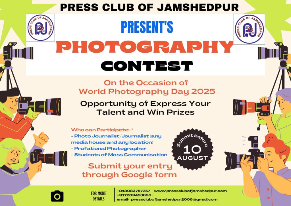 जमशेदपुर प्रेस क्लब द्वारा वर्ल्ड फोटोग्राफी डे पर प्रतियोगिता, 10 अगस्त तक भेजें इंट्री।