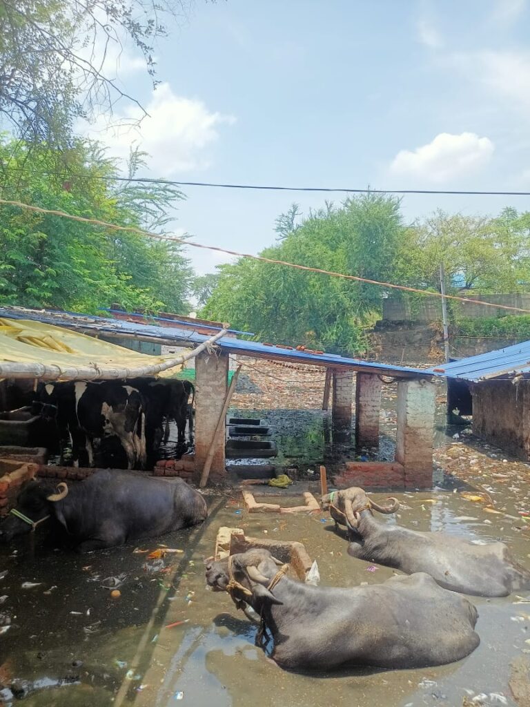 बाढ़ के कारण मवेशी पानी में डूबे, ट्रस्ट ने किया रेस्क्यू