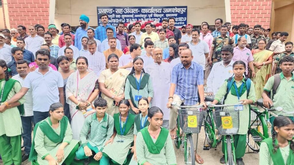 न्यूज़ टेल/जमशेदपुर: जमशेदपुर प्रखंड परिसर में झारखंड सरकार की महत्वाकांक्षी योजना साईकिल वितरण योजना “उन्नति का पहिया” के तहत कक्षा-8 में अध्ययनरत छात्र-छात्राओं के बीच साईकिल वितरण कार्यक्रम में विधायक जमशेदपुर पूर्वी सरयू राय एवं विधायक पोटका संजीव सरदार के साथ जुगसलाई विधायक मंगल कालिंदी शामिल होकर विद्यार्थियों के बीच साईकिल, मुख्यमंत्री पशुधन विकास योजना के तहत परिसंपत्ति और मुख्यमंत्री आमंत्रण फुटबॉल प्रतियोगिता में भाग लिए हुए पंचायत स्तरीय खिलाड़ियों के बीच फुटबॉल किट का वितरण किया।