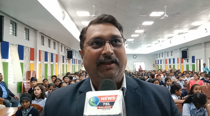 न्यूज़ टेल को संबोधित करते वरीय वाणिज्य अध्यापक मुकेश कुमार झा