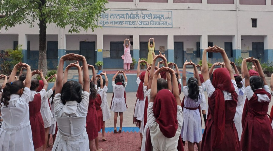 गुरु नानक मध्य विद्यालय में नन्हे मुन्नो ने दिखाई योग में उत्सुकता