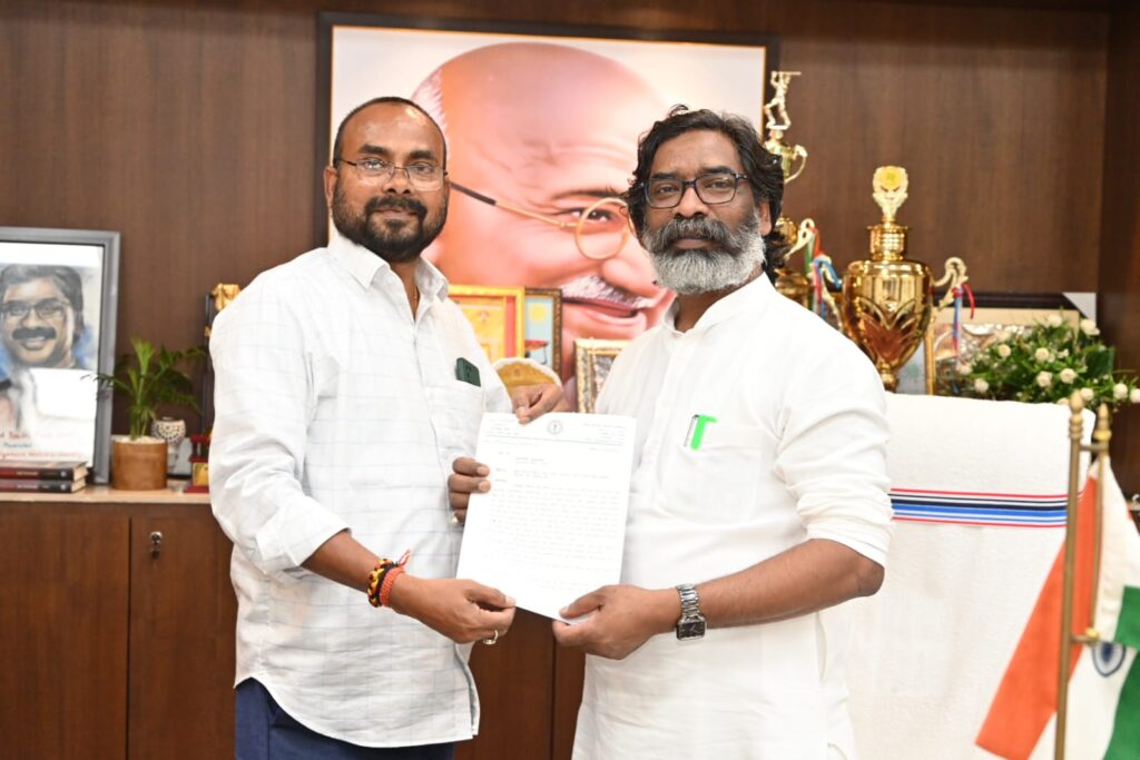 जमशेदपुर प्रखंड में तीन रेलवे ओवर ब्रिज निर्माण को लेकर मुख्यमंत्री से मिले विधायक मंगल कालिंदी।