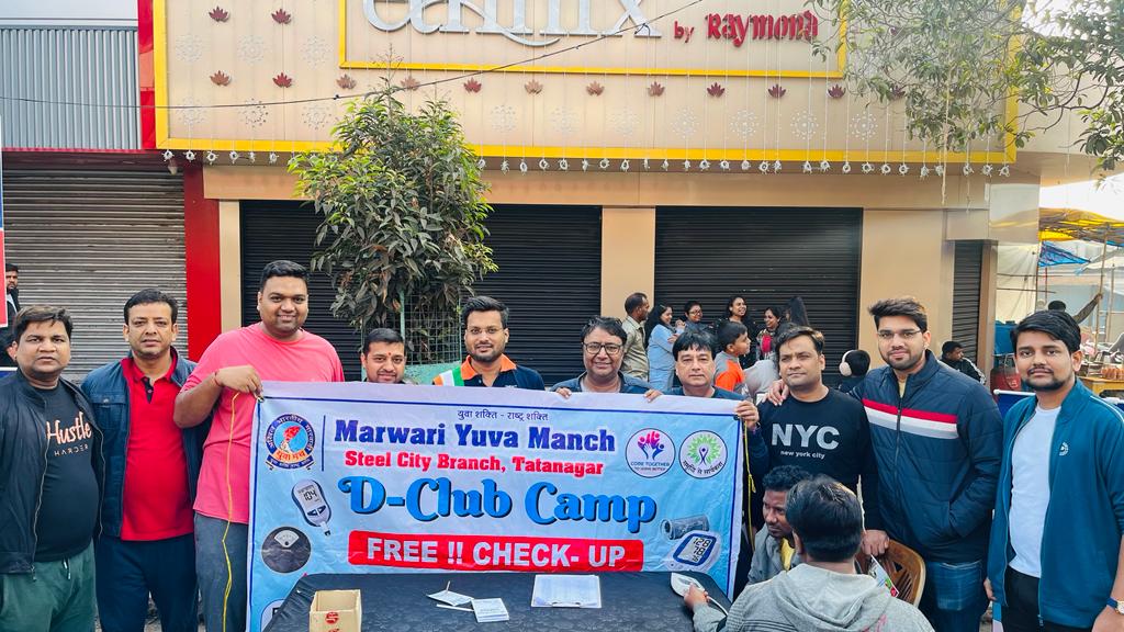 न्यूज़ टेल/जमशेदपुर: (साहिल अस्थाना) मारवाड़ी युवा मंच, स्टील सिटी, ने टाटा स्टील UISL, टाटा स्टील, और टाटा स्टील फाउंडेशन के सहयोग से जाम@स्ट्रीट इवेंट का हिस्सा बनते हुए स्वास्थ्य शिविर D CLUB का सफल आयोजन किया।।