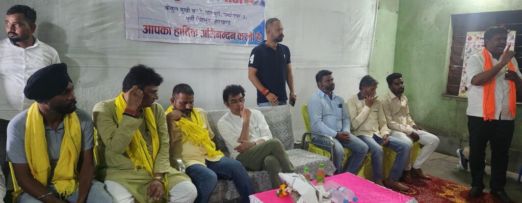 जमशेदपुर।मुखी समाज द्वारा केवल मुखी बस्ती में डॉ अजय कुमार जी का स्वागत समारोह कार्यक्रम रखा गया जिसमें बस्ती वासियों द्वारा पुष्प भुज शॉल बना कर स्वागत किया गया!डॉ अजय कुमार ने बस्ती की समस्याओं से अवगत हुए एवं जल्द से जल्द निदान करवाने का हर संभव प्रयास का आशावान दिया। डॉ अजय कुमार ने बस्ती वासियों से कहा कि वह धर्म जाति की राजनीति से ऊपर उठकर अपने बच्चों का भविष्य के लिए सोच और और भाजपा के जुमलेबाजी में न फंसे ।इस कार्यक्रम में मुख्य रूप से पूर्वी सिंहभूम जिला कांग्रेस कमेटी कार्यकारी जिला अध्यक्ष नगर धर्मेंद्र सोनकर किशोर यादव मनोज सिंह जगत मुखी संजय रिकू मुखी बबलू सोनकर बबलू झा राकेश साहू अजितेश उज्जैन कल्लू आकाश मुखी उपस्थित हुए !
