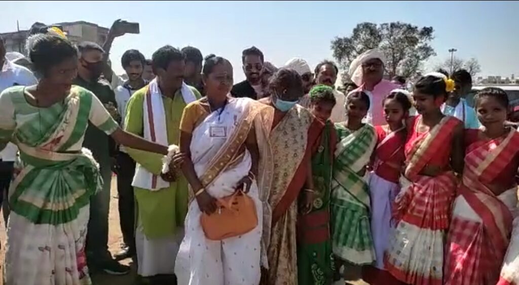 निशुल्क स्वास्थ्य सेवा शिविर में आए मुख्य अतिथि पूर्व राज्यपाल द्रौपदी मुर्मू एवं पदमश्री छुटनी महतो ने पारंपरिक नृत्य करके सबको मोह लिया।