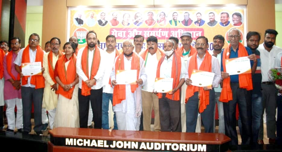 पीएम मोदी के जन्मदिन पर सेवा-समर्पण अभियान के तहत ओबीसी मोर्चा ने जनसंघ काल के कार्यकर्ताओं को किया सम्मानित