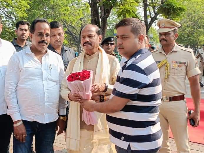 न्यूज़ टेल/जमशेदपुर: ओडिशा राज्य के महामहिम राज्यपाल एवं पूर्व मुख्यमंत्री रघुवर दास अपने एकदिवसीय जमशेदपुर प्रवास के तहत गुरुवार को जमशेदपुर स्थित एग्रिको आवास पहुंचे। जहां जिला प्रशासन के वरीय अधिकारियों की मौजूदगी में पुलिस जवानों ने उन्हें गार्ड ऑफ ऑनर दिया। राजधानी रांची से सड़क मार्ग के रास्ते दोपहर करीब 3 बजे जमशेदपुर पहुंचने पर भाजपा कार्यकर्ताओं ने एग्रिको स्थित आवास पर उनका स्वागत एवं अभिनंदन किया। इस दौरान भाजपा जमशेदपुर महानगर के पूर्व जिलाध्यक्ष गुंजन यादव, जिला महामंत्री राकेश सिंह, सुरेश शर्मा, अरुण मिश्रा, संतोष कुमार, गौतम प्रसाद, मुकेश कुमार समेत अन्य मौजूद रहे।