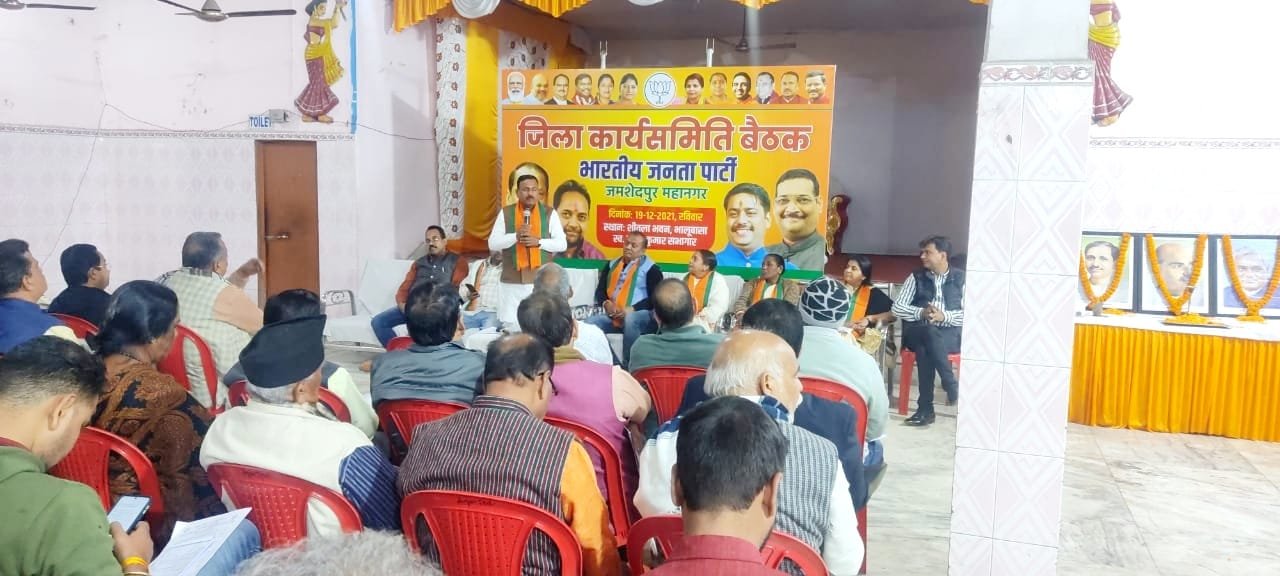जमशेदपुर। जमशेदपुर की वर्तमान गमगीन राजनीतिक माहौल के बीच रविवार को भाजपा जमशेदपुर महानगर की जिला कार्यसमिति बैठक भालूबासा स्थित स्वर्गीय सूरज कुमार साभागर में संपन्न हुई। महानगर अध्यक्ष गूँजन यादव की अध्यक्षता में आयोजित तीसरे कार्यसमिति बैठक में भाजपा के पूर्व प्रदेश अध्यक्ष डॉ दिनेशानंद गोस्वामी, प्रदेश मंत्री सह जिला प्रभारी सुबोध सिंह गुड्डू सहित अन्य वरीय नेतागण मुख्यरूप से शामिल हुए। भाजपा जिलाध्यक्ष गूँजन यादव ने अतिथियों का स्वागत करते हुए महानगर द्वारा किये गए सांगठनिक कार्यों की जानकारी दी। उन्होंने पिछले दिनों में पार्टी के कार्यों एवं प्रयासों की जानकारी देते हुए देश के पहले रक्षा प्रमुख जनरल बिपिन रावत, उनकी पत्नी समेत 12 अन्य सैन्य अफसरों के साथ भाजयुमो जिला महामंत्री सूरज कुमार के निधन पर शोक व्यक्त करते हुए श्रद्धांजलि अर्पित की। उन्होंने कहा कि आगामी 25 दिसंबर को पूर्व प्रधानमंत्री, भारत रत्न श्रद्धेय अटल बिहारी वाजपेयी की जयंती को सुशासन दिवस के रूप में स्मरण करते हुए पूरे महानगर में कई कार्यक्रम आयोजित किये जाएंगे।