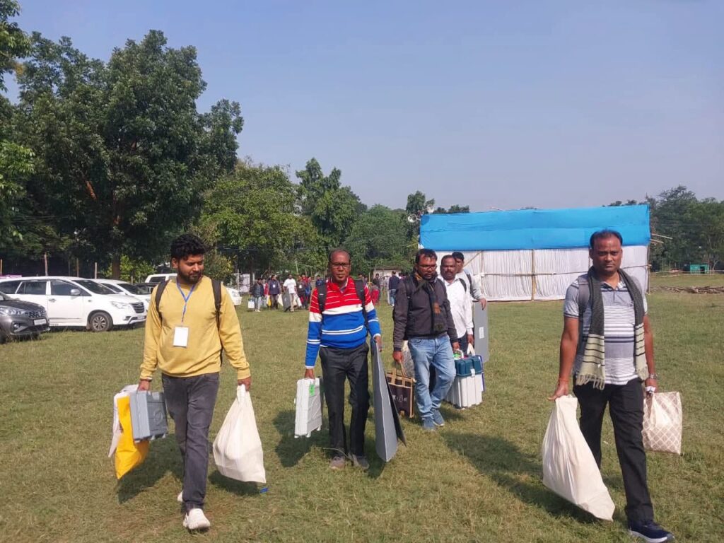 झारखंड:घाटशिला विधानसभा उपचुनाव को लेकर शनिवार को जिला प्रशासन ने तैयारियों को अंतिम रूप दे दिया। को-ऑपरेटिव कॉलेज स्थित डिस्पैच सेंटर से सभी मतदान दलों को रवाना किया गया। जिला निर्वाचन पदाधिकारी कर्ण सत्यार्थी और वरीय पुलिस अधीक्षक पीयूष पांडेय ने मौके पर पहुंचकर व्यवस्थाओं की गहन समीक्षा की और अधिकारियों को स्पष्ट निर्देश दिए कि मतदान में किसी भी प्रकार की लापरवाही बर्दाश्त नहीं की जाएगी।निरीक्षण के दौरान दोनों अधिकारियों ने मतदान कर्मियों, सेक्टर मजिस्ट्रेटों और सुरक्षा बलों से संवाद करते हुए कहा कि सभी दल निर्धारित समय पर अपने-अपने केंद्रों पर पहुंचें और निर्वाचन आयोग के निर्देशों का अक्षरशः पालन करें।