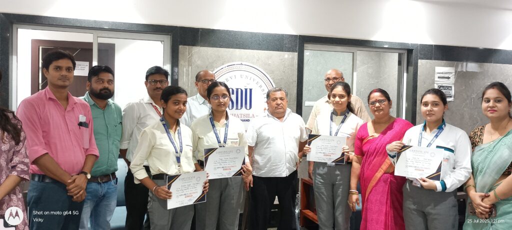 न्यूज टेल डेस्क: सोना देवी विश्वविद्यालय, घाटशिला के इतिहास विभाग द्वारा हुल दिवस के अवसर पर आयोजित निबंध प्रतियोगिता के विजेता प्रतिभागियों को आज सम्मानित किया गया। विश्वविद्यालय के कुलपति डॉ. जे. पी. मिश्रा और कुलसचिव डॉ. गुलाब सिंह आजाद ने विजेताओं को प्रमाण पत्र देकर पुरस्कृत किया और उनके उज्ज्वल भविष्य की शुभकामनाएं दीं।