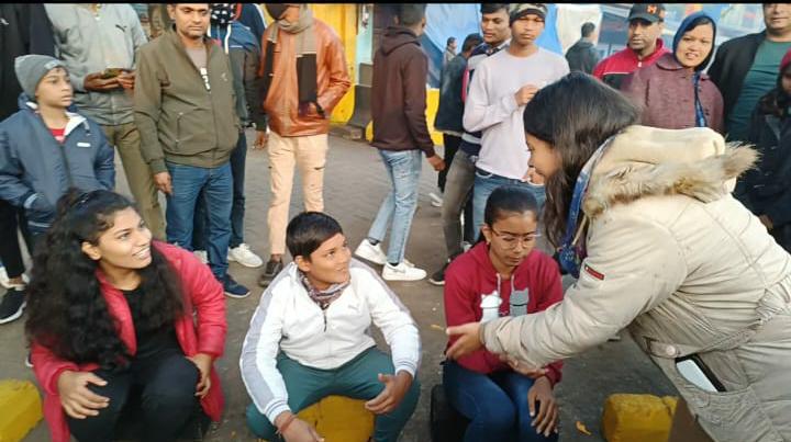 बलून फोड़ प्रतियोगिता के प्रतिभागियों का उत्साहवर्धन करतीं रिशु सिंह