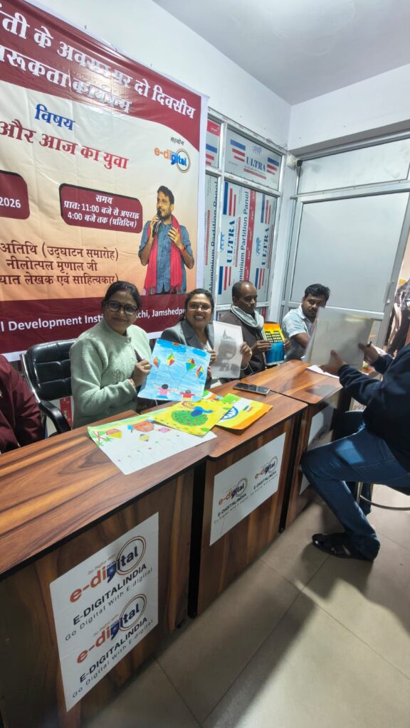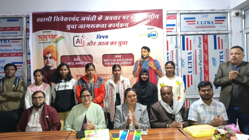 जमशेदपुर: राष्ट्रीय युवा दिवस के अवसर पर सामाजिक संस्थान आरम्भ और ई डिजिटल इंडिया स्किल डेवलपमेंट इंस्टिट्यूट द्वारा दो दिवसीय कार्यक्रम के तहत दूसरे दिन ड्रॉइंग प्रतियोगिता का सफल आयोजन किया गया। कार्यक्रम का विषय “भविष्य का युवा – एआई और भविष्य का भारत” रहा, जिसमें सीनियर एवं जूनियर वर्ग के विद्यार्थियों ने उत्साहपूर्वक भाग लिया।कार्यक्रम की मुख्य अतिथि डॉ मौसमी पॉल, (एलबीएसएम कॉलेज) ने अपने संबोधन में कहा कि “आर्टिफिशियल इंटेलिजेंस आज के युवाओं के लिए अत्यंत महत्वपूर्ण है।