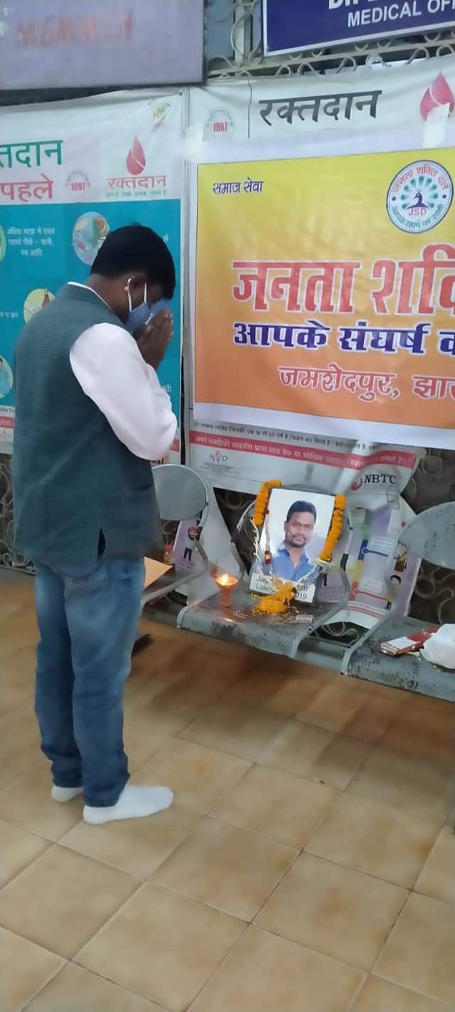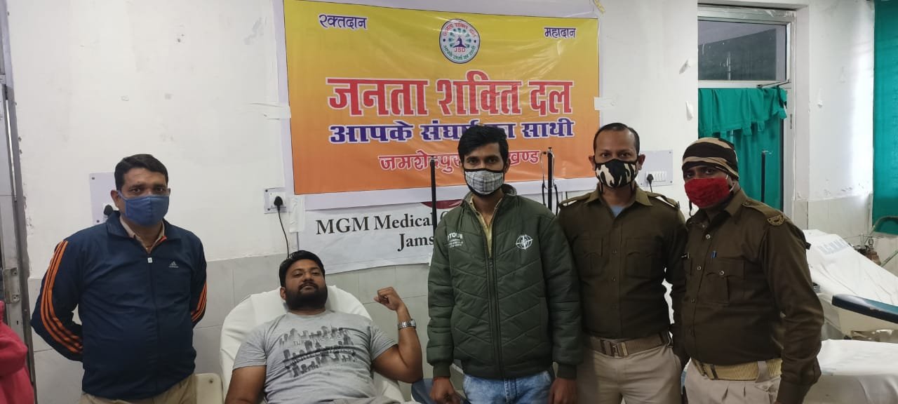 जमशेदपुर : सामाजिक संस्था जनता शक्ति दल ने स्वर्गीय जगदीश की याद में उनके जयंती के शुभ अवसर पर एमजीएम ब्लड बैंक के तत्वावधान में रक्तदान शिविर का आयोजन किया गया। इस रक्तदान कार्यक्रम में युवाओं ने बढ़-चढ़ कर हिस्सा लिया। इस अवसर पर जनता शक्ति दल के अध्यक्ष विपिन प्रताप सिंह ने बताया कि स्वर्गीय जगदीश साव के जयंती के उपलक्ष्य में रक्तदान शिविर का आयोजन किया गया। जिसमे 40 यूनिट रक्त का संग्रह हुआ। अध्यक्ष विपिन सिंह ने कहा कि एमजीएम अस्पताल के ब्लड बैंक में रक्त की कमी के कारण आये दिन मरीजों को परेशानियों का सामना करना पड़ता हैं। जिसमे कई गरीब मरीजों की जान जाने का खतरा बना रहता हैं। यही कारण हैं की सरकारी अस्पताल के ब्लड बैंक में रक्तदान शिविर का आयोजन किया गया है। जिससे लोगो की परिशानियों को कुछ हद तक कम किया जा सके। उन्होंने कहा की जनता शक्ति दल हमेशा लोगो की सेवा के तत्पर रहेगी। कार्यक्रम में मुख्य रूप से भाजपा महानगर पूर्व जिलाध्यक्ष दिनेश कुमार, विपिन प्रताप सिंह, आकाश साहू, विक्की सिंह, शिवा सिंह, शुभम सिंह, सरवन कुमार, आकाश सिंह आदि भारी संख्या में जनता शक्ति दल के युवा मौजूद थे।