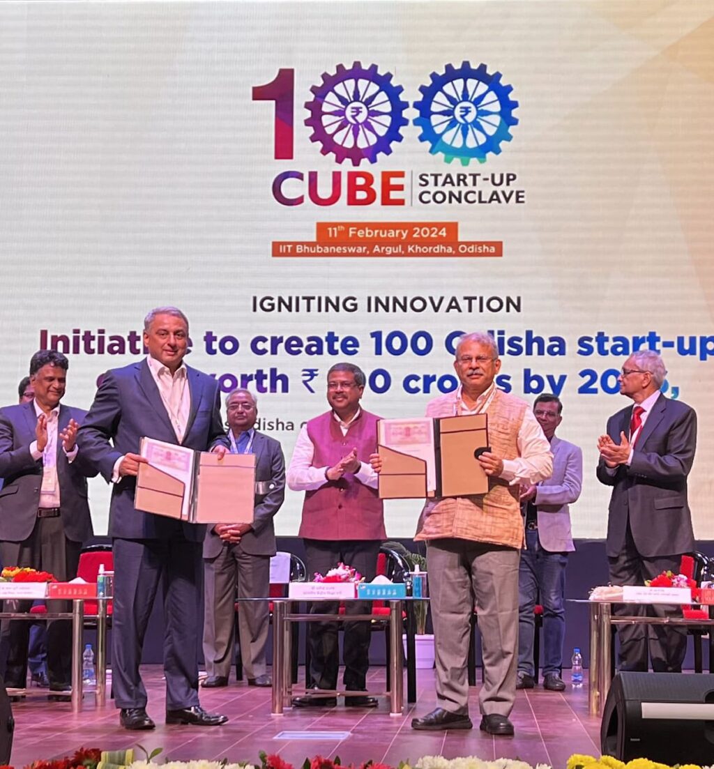 11 फरवरी, 2024 को आईआईटी भुवनेश्वर में 100-क्यूब स्टार्ट-अप कॉन्क्लेव के दौरान श्री धर्मेंद्र प्रधान, माननीय केंद्रीय शिक्षा और कौशल विकास और उद्यमिता मंत्री, भारत सरकार