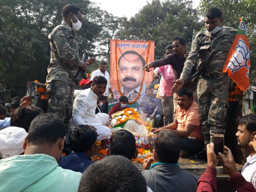 सरायकेला : सरायकेला जिले के ईचागढ़ के जुझारू नेता व विस्थापितो के महानायक स्व. विधायक साधु चरण महतो का पार्थिक शरीर ईचागढ़ के चांडिल गोल चक्कर लाया गया। इस मौके पर बीजेपी सांसद संजय सेठ और आदित्यपुर उपमेयर बॉबी सिंह उपस्थित रहे। साथ ही सैकड़ों कार्यकर्ताओं ने श्रद्धासुमन श्रद्धांजलि अर्पित किया। इसके बाद उनके पार्थिव शरीर को उनके आवास ले जाया गया। इसके बाद प्रथम आंदोलन टाटा के खिलाफ डेन्डोपोसी आन्दोलन स्थल सरायकेला आंदोलन स्थल पर पार्थिव शरीर को ले जाया जाएगा और उनके पैतृक आवास सरायकेला के रंगाटांड़ होते हुए आदित्यपुर स्थित वर्त्तमान आवास र्श्रीडूंगरी में परिवार के साथ अंतिम दर्शन के बाद जुगसलाई स्थित पार्वती घाट ले जाया जाएगा। वही संजय सेठ ने कहा कि उनका चला जाना पार्टी के लिए भारी क्षति है। यहां के स्थानीय स्वर्णरेखा से विस्थापित लोगों की मुद्दों पर लड़ाई कर रहे साधु चरण महतो की कमियां उनकी यादों को बरकरार रखने के लिए क्षेत्र में उनकी प्रतिमा स्थापित भी की जाएगी। ताकी आने वाले पीढ़ी को इनके आंदोलन की प्रेरणा मिलती रहेगी।वही स्थानीय लोगों में ही दुखी घड़ी देखी जा रही है। जिसमें नवीन पसार ने बताया कि उनके जुझारू पन की कमी लोगों में हमेशा खलेगी।