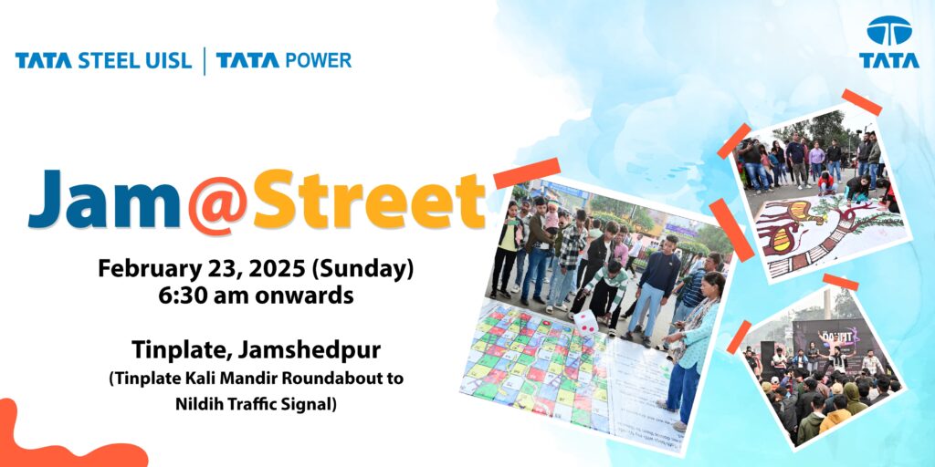 जमशेदपुर:19 फरवरी 2025 – टाटा स्टील यूआईएसएल, टाटा पावर, जोजोबेरा के सहयोग से जैम@स्ट्रीट कार्यक्रम के तीसरे संस्करण की घोषणा करते हुए उत्साहित है । यह बहुप्रतीक्षित कार्यक्रम रविवार, 23 फरवरी 2025 को सुबह 6:30 बजे टिनप्लेट में शुरू होगा । यह कार्यक्रम टिनप्लेट काली मंदिर गोल चक्कर से नीलडीह ट्रैफिक सिग्नल तक फैला होगा ।बैडमिंटन, ज़ुम्बा वर्कआउट और कार्यक्रम में स्वादिष्ट स्वस्थ भोजन जैसी गतिविधियों से भरे दिन के लिए तैयार रहें ।जैम@स्ट्रीट सिर्फ़ एक कार्यक्रम नहीं है, यह एक उत्सव है जो अलग-अलग रुचियों के अनुरूप कई तरह की गतिविधियाँ प्रदान करता है । चाहे आप फ़िटनेस के शौकीन हों, कला प्रेमी हों या एक ऐसा परिवार जो मौज-मस्ती के लिए बाहर जाना चाहता हो, जैम@स्ट्रीट में सभी के लिए कुछ न कुछ है ।लाइव संगीत प्रदर्शनों का आनंद लें, विभिन्न प्रकार के खाद्य स्टालों का पता लगाएं, और रोमांचक बास्केटबॉल और कराटे प्रदर्शन देखें । आप साहसिक खेलों में भी भाग ले सकते हैं, पेंटिंग सत्रों में भाग ले सकते हैं, और अस्थायी टैटू बनवाने का मज़ा ले सकते हैं । जुम्बा सत्र को न चूकें, एक जीवंत नृत्य अनुभव जो आपके दिन में लय जोड़ देगा !Jam@Street में भागीदारी सभी के लिए निःशुल्क है।