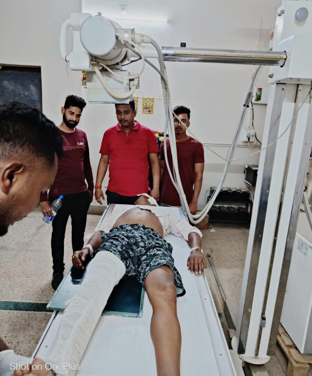 उनका प्राथमिक उपचार आपातकालीन कक्ष में मौजूद चिकित्सक डॉ. दिवाकर सिंह के द्वारा किया गया । डॉ. सिंह ने बताया कि सड़क दुर्घटना में उनका एक पैर फ्रैक्चर हो गया है वहीं सर में भी चोट आई है अग्रेतर चिकित्सा जारी है ।