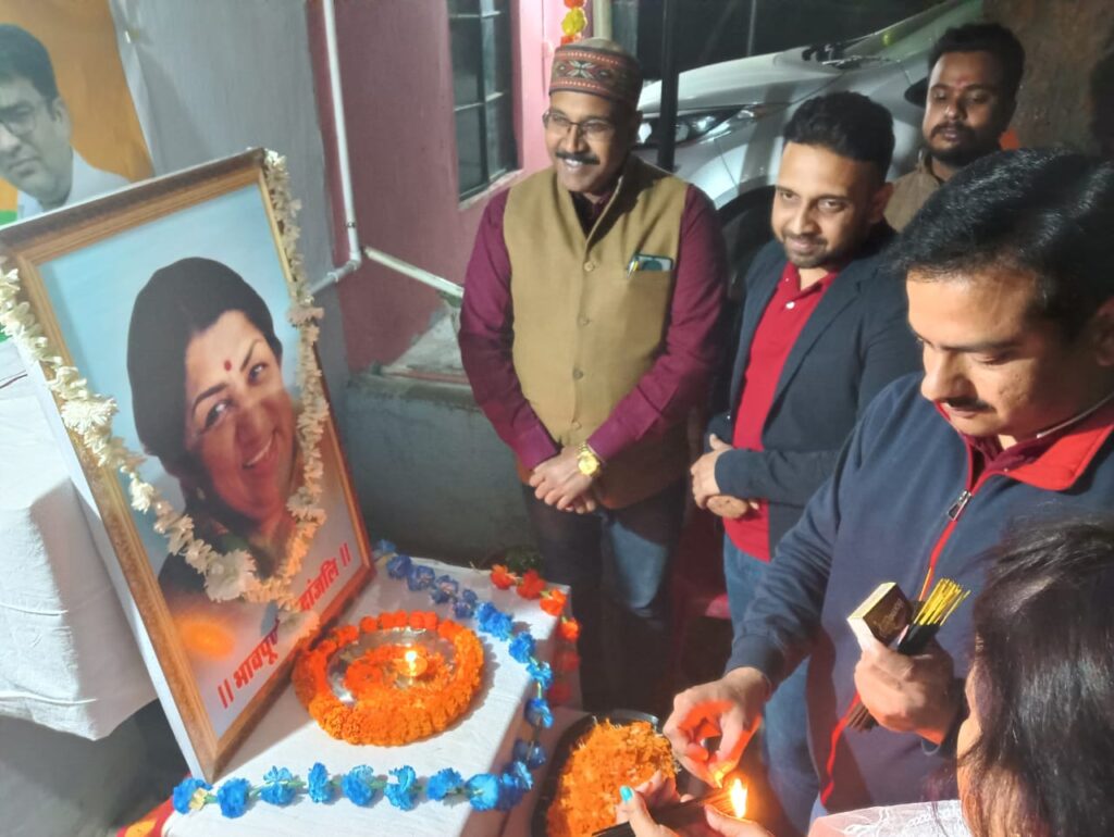 जमशेदपुर : भाजपा टेल्को मंडल जिला मीडिया प्रभारी अमित सिंह के निवास पे लता मंगेशकर को श्रद्धांजलि कार्यक्रम हुआ जिसमे मुख्य अतिथि के रूप में झारखंड प्रदेश के प्रवक्ता कुणाल षाड़ंगी जिला महामंत्री राकेश सिंह जी जिला मंत्री पप्पू सिंह टेल्को मंडल अध्यक्ष हेमंत सिंह महिला मोर्चा जिला अध्यक्ष ज्योति अधिकारी उपस्थित हुए। सर्वप्रथम भारत रत्न लता मंगेशकर जी को श्रद्धा सुमन अर्पित किया जिला मीडिया प्रभारी अमित सिंह ने संचालन किया। जिला महामंत्री राकेश सिंह ने कहा लाता दी का जगह कोई ले नही सकता है प्रदेश प्रवक्ता कुणाल सारंगी जी लता दी की जीवन में प्रकाश डालते हुए उनके बारे में बहुत सी बाते बताई उन्होंने बताए की लता दी ने एक बार कहा मुझे अवार्ड मत दीजिए नए नए लोगो को दिया जाए। मां सरस्वती की रूप में थी उनका गला में जो जादू था अब मिलना बहुत मुश्किल है बहुत छोटी सी उम्र में अपनी जिम्मेदारी ली। उनका जगह अब कोई ले सकता है धन्यवाद ज्ञापन सुधा यादव जी ने किया।