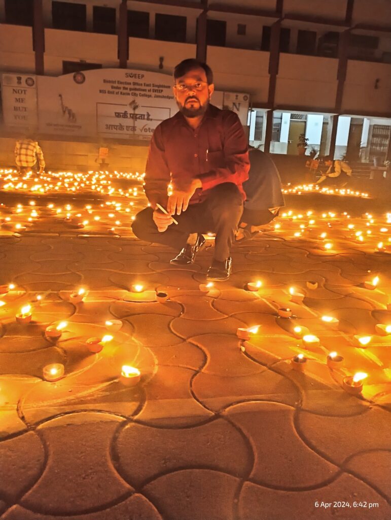 1500 आकर्षक दीप जलाकर पूरे कॉलेज प्रांगण को सजाया गया | पूर्वी सिंहभूम जिले में लोकसभा चुनाव 2024 में मतदान प्रतिशत बढ़ाने के लिए पूर्वी सिंहभूम जिला निर्वाचन पदाधिकारी अनन्य मित्तल, डीडीसी सह वरीय पदाधिकारी स्वीप कोषांग मनीष कुमार ने मतदाता जागरूकता कार्यक्रम चलाने का निर्देश सभी स्कूल व कॉलेज में निर्वाचन साक्षरता क्लब के मध्यम से अलग-अलग विषय में मतदाता जागरूकता कार्यक्रम चलने का निर्देश दिया है|