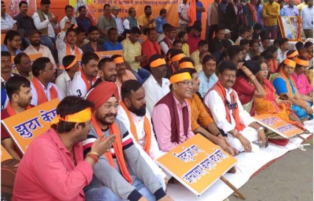 विहिप ने दिया हिन्दू हितों की रक्षा के लिए साकची गोलचक्कर पर धरना