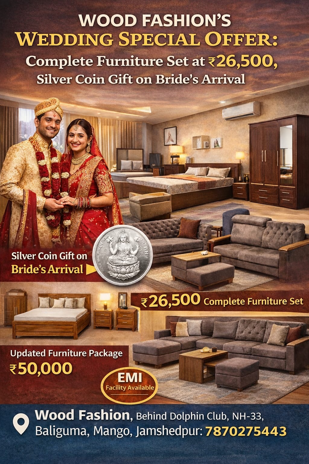वुड फैशन में शादी स्पेशल ऑफर: ₹26,500 में पूरा फर्नीचर सेट, दुल्हन के आगमन पर चांदी का सिक्का उपहार