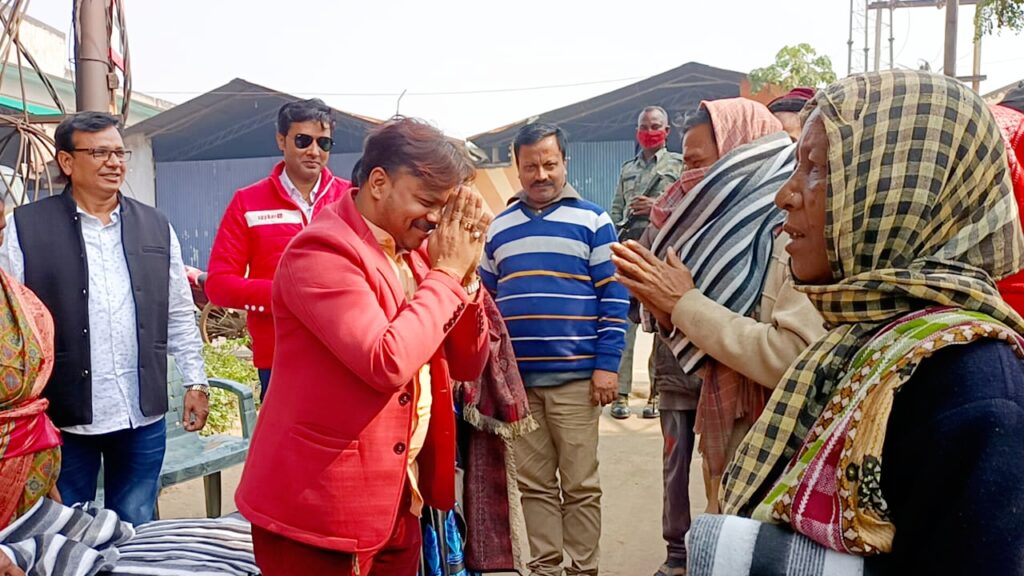 जमशेदपुर : जिला परिषद सदस्य सुदीप्तो दे राणा एवं समाजसेवी प्याली दे के द्वारा करनडीह अंतर्गत मांझी टोला के पास ठण्ड के मद्देनजर रखते हुए गरीब जरूरतमंदों के बीच कोविड नियमों का पालन करते हुए लगभग 150 कम्बल का वितरण जिला परिषद राणा दे के नेतृत्व मे किया गया।इस अवसर पर भाजपा के सम्मानित नेतागणों में विशेष रूप से उपस्थित पोटका विधानसभा की पूर्व विधायक मेनका सरदार, भाजपा किसान मोर्चा प्रदेश कार्यसमिति सदस्य अनमोल वर्मा “पप्पु”, नोमिता मुखर्जी, सुन्दरनगर मण्डल पूर्व महामंत्री ईश्वर सोरेन, अमित मिश्रा, नूपुर दा, युदिष्ठिर गोप, रामचंद्र टुडू, कोकिला मुर्मू, अम्बिका गोप, संजू महापात्रों, आदि कार्यकर्ता गण एवं ग्रामवासी उपस्थित थे। सभी सम्मानित भाजपा नेतागण ने सभी सदस्यों का आभार प्रकट किया एवं कहा हम सभी को आगे आकर जरूरतमंद लोगों को मदद करने की जरूरत है।